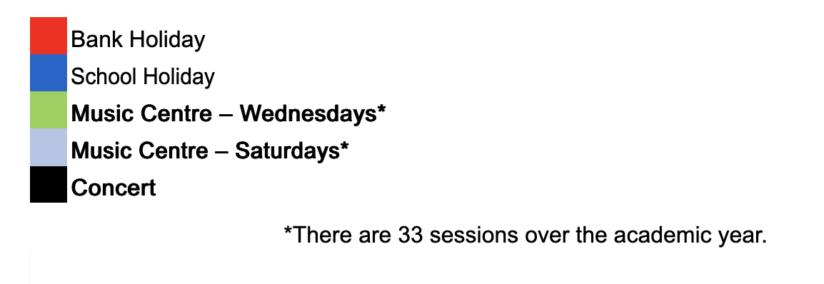All students have the opportunity to experience playing in informal and formal concerts throughout the year, both locally and regionally. For the more senior/advanced groups there is also the opportunity to play during summer tours. There are often additional projects for various groups and all students have the opportunity to engage with Arts Award at all levels (Discover, Explore, Bronze, Silver, Gold).
